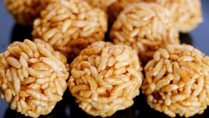 Mix rice with melted jaggery, ghee, and cardamom. Shape into quick laddoos — an easy homemade sweet treat.