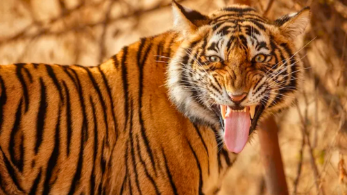 The Bengal tiger lives mainly in India and Bangladesh. It is the national animal of India. It is a strong predator and lives in forests and grasslands.