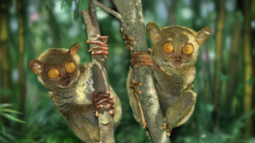 Tarsiers are small primates that live in the Philippines and parts of Indonesia. They have large eyes and can jump long distances between trees.