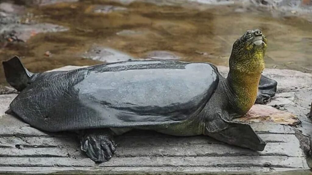 This turtle is one of the largest freshwater turtles in the world. It lives in China’s Yangtze River. It is very rare and critically endangered.