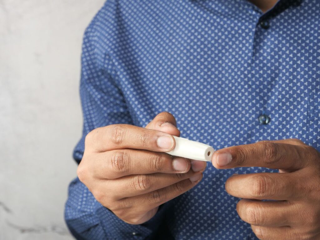 Sometimes, you prick your finger but can’t get enough blood. It’s tempting to squeeze hard, but that can mix in fluid from under your skin, which may make your reading wrong. Instead, wash your hands in warm water, let your arm hang down for a minute, and prick the side of your fingertip. This helps blood flow naturally without needing to squeeze too much.