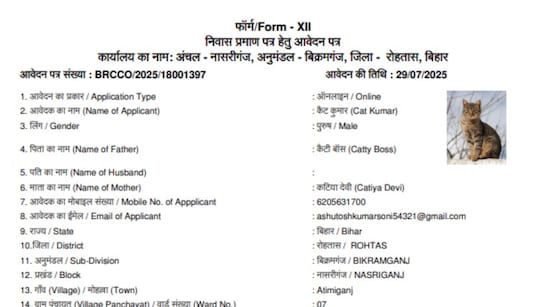 In what appears to be a growing trend of digital mischief, another peculiar case has surfaced in Bihar where an application for a residential certificate was filed under the name “Cat Kumar”, son of “Catty Boss” and “Catiya Devi.” This strange entry, complete with a photograph of a domestic cat, is now under investigation by local authorities.