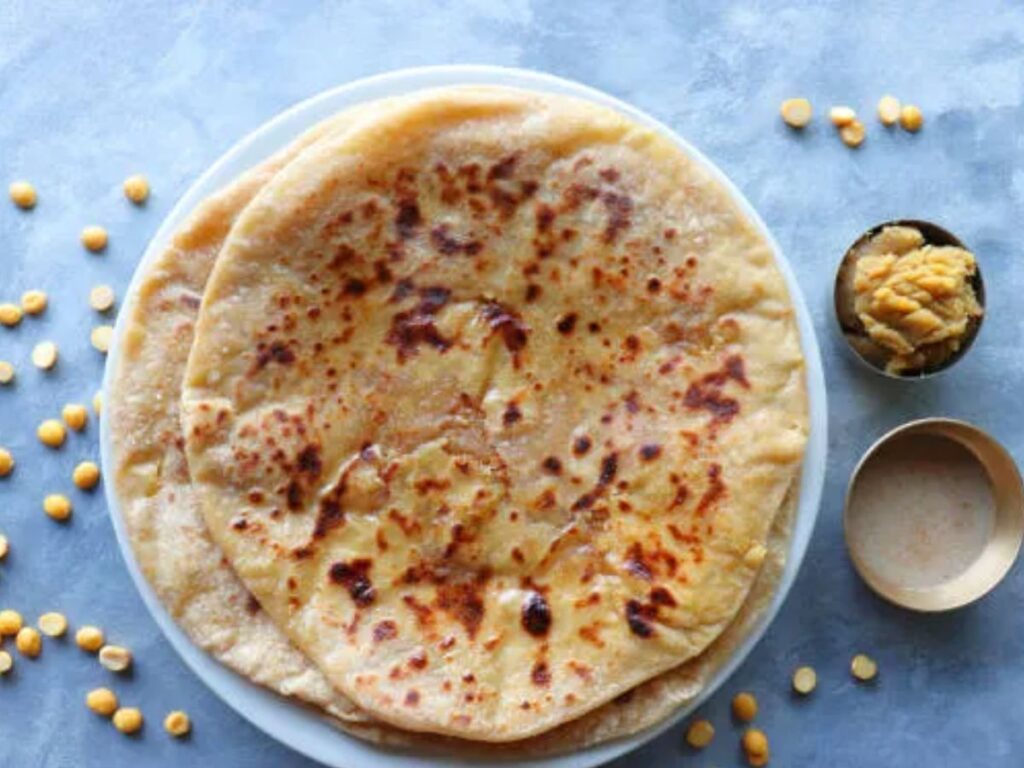 Puran Poli is a sweet flatbread from Maharashtra. Prepare a dough with wheat flour, then make a filling of cooked chana dal, jaggery, and cardamom. Roll the dough around the filling and cook on a hot griddle with a little ghee until golden brown.