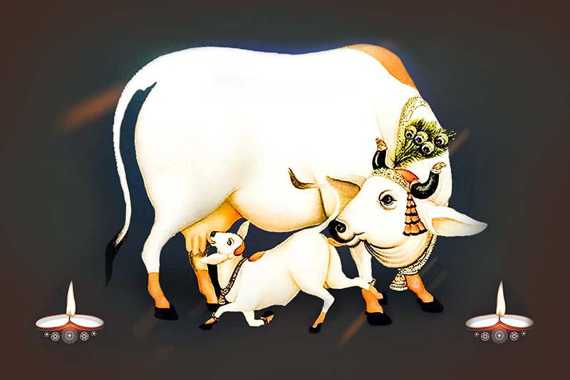 In urban areas, devotees often worship idols or photographs of cows and calves, symbolically expressing gratitude to the nurturing spirit of the divine mother. Rituals include drawing rangoli outside homes, observing fasts, and offering arghya—fresh water from a copper urn—to the feet of calves as a mark of reverence.