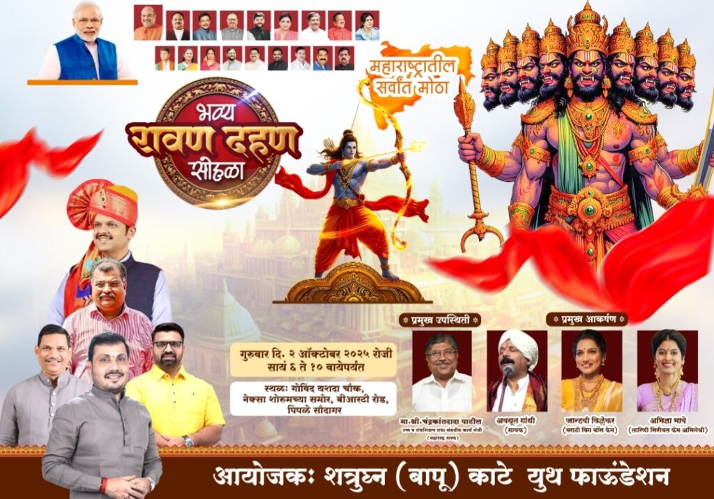 Pimpri-Chinchwad: Continuing the age-old tradition of celebrating the festival of Ravan Dahan, a grand event along with cultural performances has been organized in Pimple Saudagar. The program is being hosted by Shatrughna Kate Youth Foundation under the leadership of BJP City President (District) Shatrughna Sitaram Kate and will take place on Thursday, October 2, 2025.