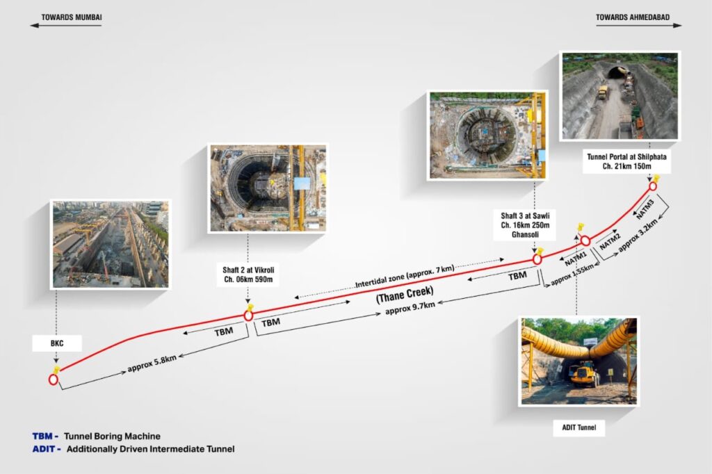 India’s First Bullet Train Undersea Tunnel Section Between Ghansoli and Shilphata Now Open