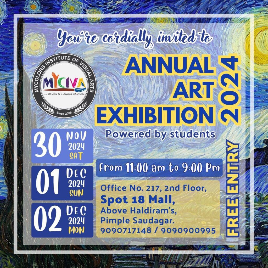 Pune’s premier art and design school, Mycolors Institute of Visual Arts (MYCIVA), is presenting its largest-ever 3-day exhibition, showcasing an extraordinary array of art and designs crafted by its talented students. The event, which commenced on November 30, 2024, will continue until December 2, 2024, at Spot 18 Mall, Pimple Saudagar.