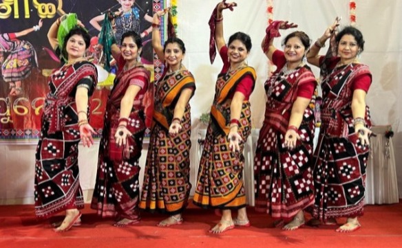 At 10 am, the event was initiated by worshiping Goddess Maa Samaleshwari, offering new grains brought from Odisha and bhajan by the ladies. People exchanged warm greetings among them, and guests were honored. The festival hosted traditional dance, songs and music by children and adults. The beats of pancha badya such as Dhol, Nishan, Tasa, Muhuri, flute by Runu Jhunu Kalaparishad, Balangir created a wonderful atmosphere. Prachi Panigrahi, performed special folk dances during the event. The audience also danced and immersed themselves in the rhythms of Sambalpuri music.