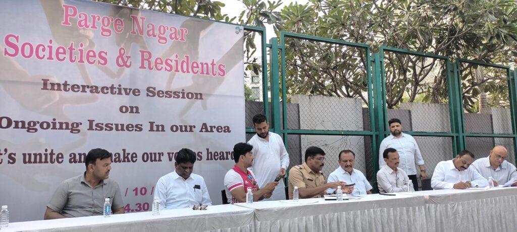 A meeting was organized by Parge Nagar Residents Forum, an informal group of over 16 societies who are fighting to maintain cleanliness and resolve Traffic and other issues from the area. Over 250 Residents of the area came together yesterday to raise various issues troubling the Residents such as illegal Dumping on the newly made road from City Lawns To Lead school, double Lane parking from Welcome Hall To City Lawns outside cafe and coffee shops, parking of chicken carrying vehicles on the newly made road and youngsters making noise and chaos on the road by holding birthday celebrations.