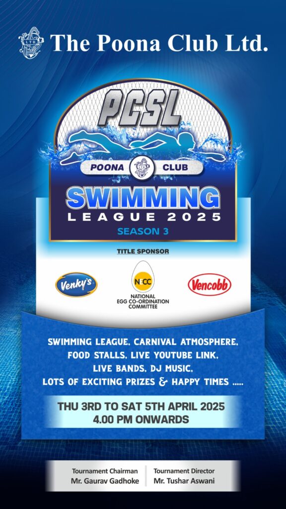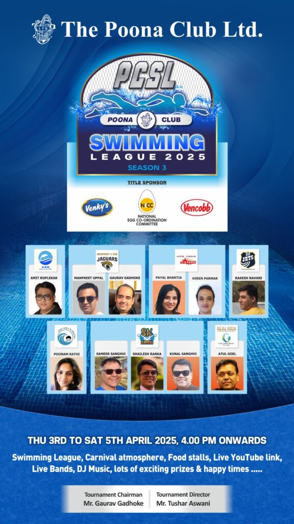 Pune, April 2, 2025: The Poona Club Swimming League 2024, will be held at The Poona Club Swimming Pool from 3 to 5 April 2025.