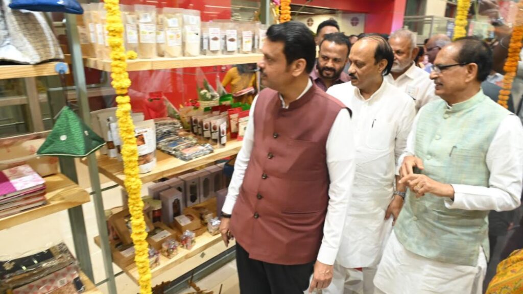 Pune, June 4: A special sales outlet titled ‘Umed Savitri’ by the Pune Zilla Parishad’s women self-help group (SHG) was inaugurated today at the Pune International Airport in the presence of Maharashtra Chief Minister Devendra Fadnavis and by the hands of Union Rural Development Minister Shivraj Singh Chouhan.