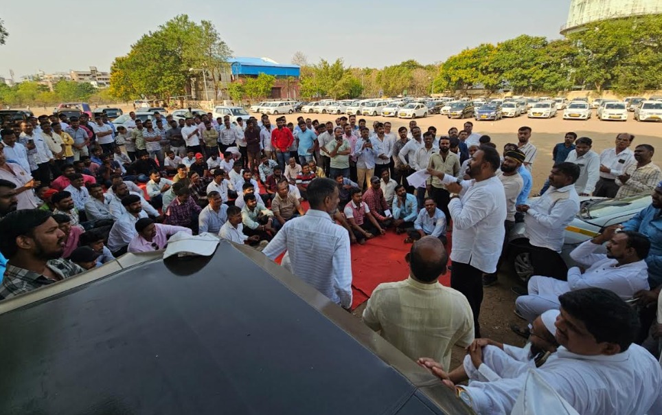 The meeting saw a large turnout of cab drivers associated with app-based services such as Ola, Uber, and Rapido.