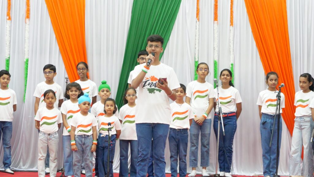 After the flag hoisting, a vibrant cultural program unfolded. The tiny tots charmed everyone with their performance on Project Sindoor, Kesari, while our senior citizens rendered a soulful Desh Bhakti song that resonated deeply. Manish Joshi’s lively anchoring, interspersed with fun knowledge questions for children, kept the audience engaged and entertained.