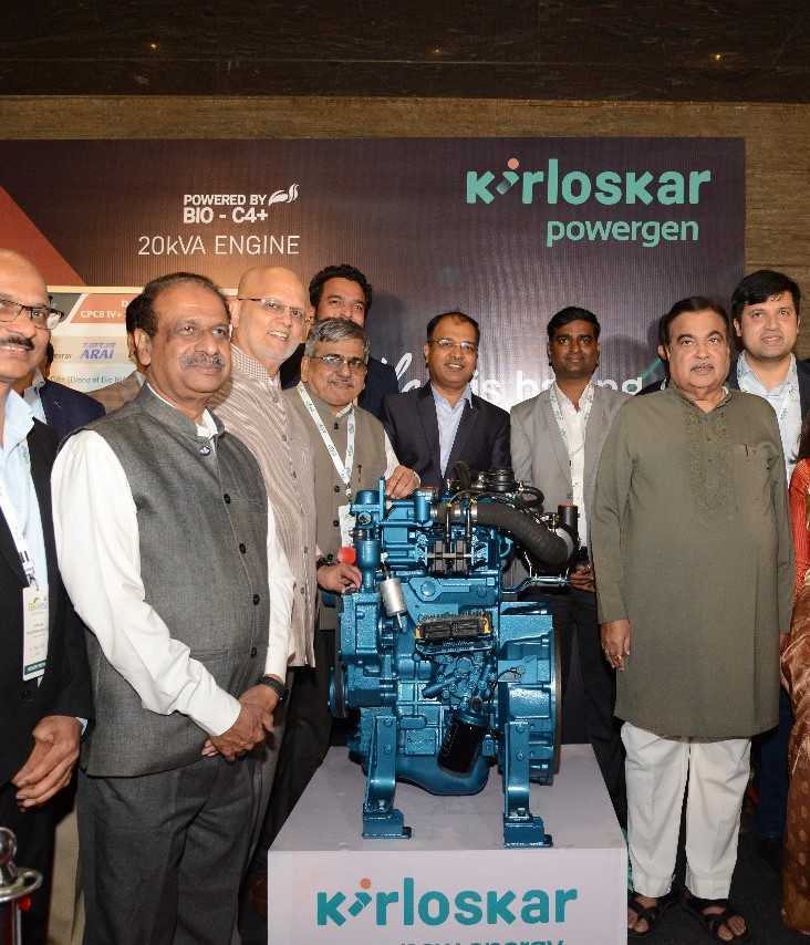 Photo 3 – On the occasion of World Biofuel Day, a special program was organized by Praj Industries, where a 100% biofuel-powered genset developed by Kirloskar Oil Engines was showcased. In the photo (from left), ARAI Director Dr. Reji Mathai, Dr. Pramod Chaudhari, and Nitin Gadkari.