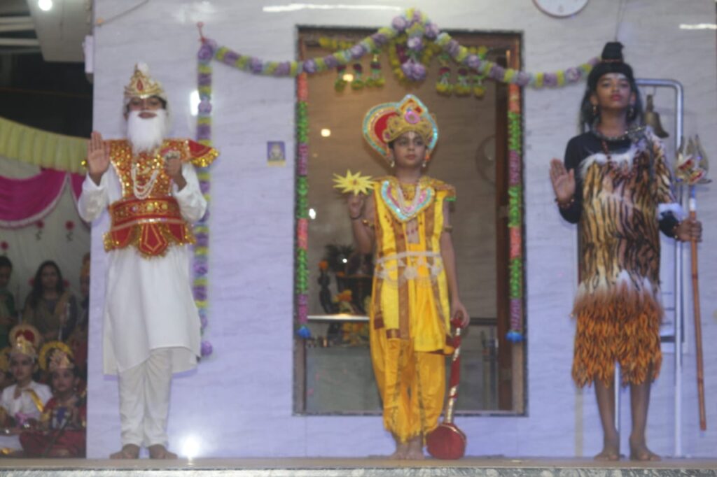 The children, under the guidance of Manisha Gautam, performed with dedication, bringing the mythological narrative to life in a visually engaging and culturally enriching way. Manisha, despite her busy schedule, took time to teach the children, instilling both creative skills and a deeper understanding of cultural heritage.