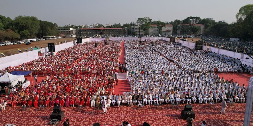 Pune, April 9: In a grand and spiritually charged event, over 11,000 residents of Pune gathered today at S.P. College ground for the collective chanting of the Navkar Mahamantra, organized by the Jain International Trade Organization (JITO), Pune chapter. The event was held to mark the World Navkar Mahamantra Day and aimed at promoting world peace and universal welfare beyond the barriers of caste, religion, and sect.