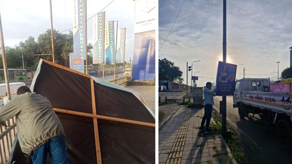 Pune, October 3, 2025: In a major city-wide operation, Pune authorities commenced an early morning drive at 5 AM today to remove unauthorized flex banners and hoardings across the city. The action targeted illegal advertising boards installed without permission, spanning 15 regional office jurisdictions.