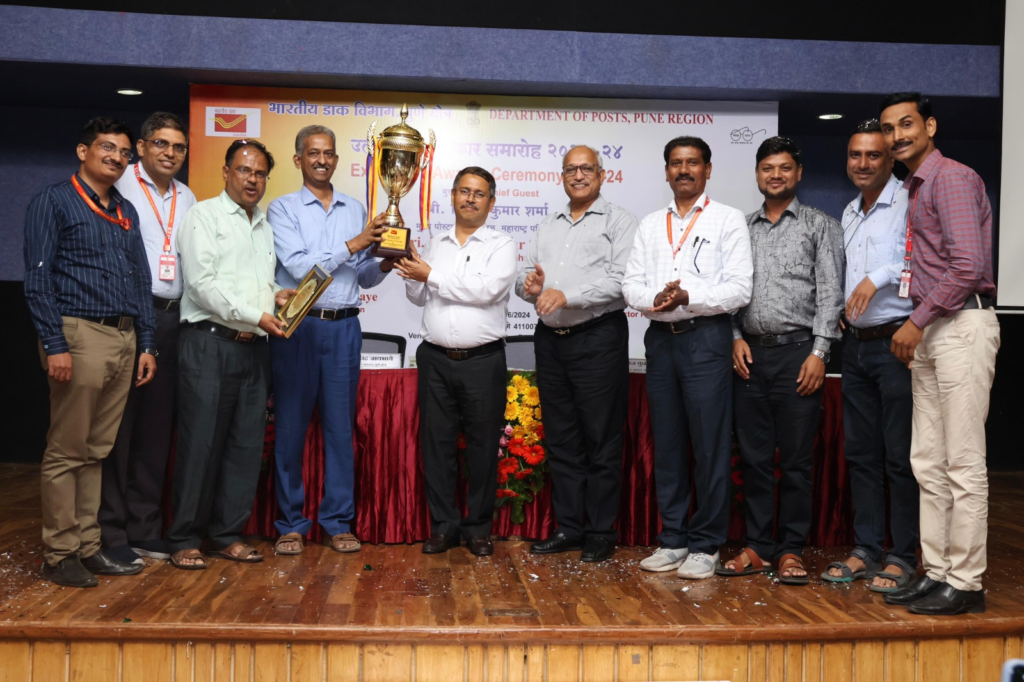 On June 18, 2024, the Indian Postal Department held its annual awards ceremony for the Pune region, recognizing the achievements of its 10 divisions over the past year. The event was graced by the presence of the Chief Postmaster General of Maharashtra Circle, Honorable Kishan Kumar Sharma, and Postmaster General, Shri Ramchandra Jayabhaye.
