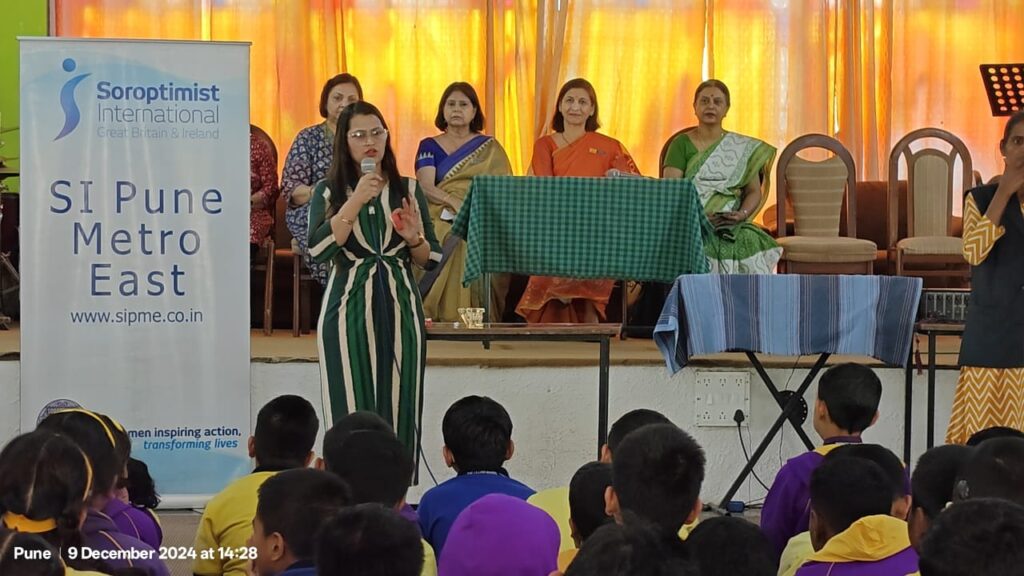 To facilitate the meaningful engagement of persons with disabilities in line with human rights based approaches, a dental health and hygiene awareness program was organized on 9th December by Soroptimist International of Pune Metro East, a women’s NGO working for creating enabling opportunities and empowerment of women in girls through education opportunities. Anjaly Banarji, a reputed International Baccalaureate education consultant and President of SI Pune Metro East designed a Dental health and hygiene awareness program that brought together 106 students from preparatory and middle stage( 5-8 classes) of Maharashtra fellowship for Deaf and The Lillian School,a CBSE school in Mohammadwadi Pune, to participate jointly in an interactive session on Dental health and hygiene by paedodontist Dr.Kanupriya Choudhary and translators using sign language. Anita Thamburaj, past president of Army wives welfare association AWWA and a volunteer Soroptimist presented a floral bouquet to the speaker of the day.