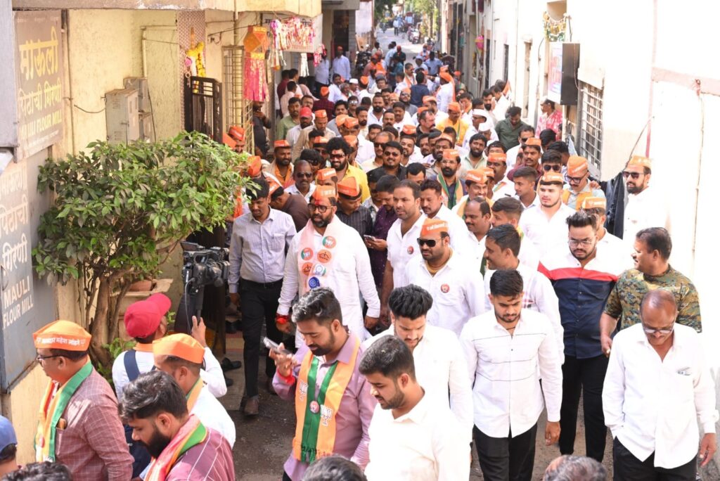 As the BJP Maha Yuti candidate for the Bhosari Assembly constituency, Mahesh Landge connected with residents during his visit to Khando Mal, Gajanan Housing Society, Vinayak Residency, and other areas around Dighi Road. Here, he discussed various issues and gained the community’s support.