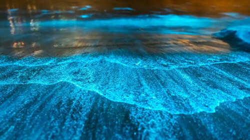 The mesmerising glow occurs due to bioluminescent phytoplankton or dinoflagellates, microscopic marine organisms that emit light when disturbed by waves, footsteps, or motion in the water. This glow acts as their defence mechanism, producing an ethereal blue hue that transforms the coastline into a living galaxy.
