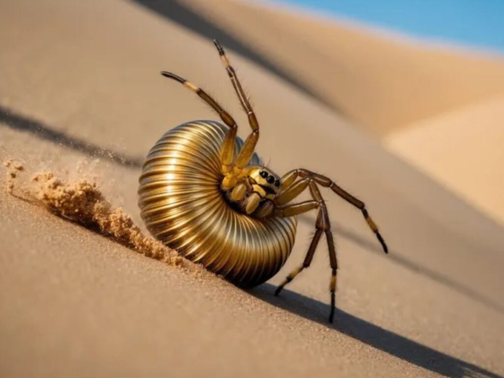 Now, meet the golden wheel spider, another South African wonder. Instead of curling into a ball to hide, this clever spider rolls away from trouble! When chased by predators, it cartwheels down sand dunes like a tiny wheel. It doesn’t spin webs but hunts insects at night. Though mildly venomous, it’s harmless to humans. Its biggest enemy is the pompilid wasp, which paralyzes the spider and lays eggs inside it—a truly scary fate in the wild.